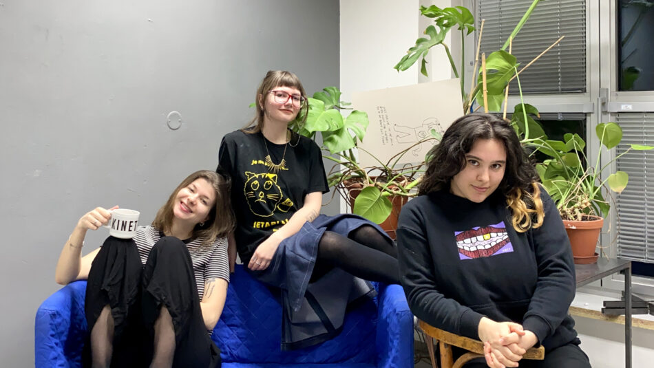 Jsme tři grafické designérky a spolužačky z ateliéru Vizuální design a společně utváříme grafický kolektiv Kolem oběda. Propojujeme smysluplná koncepční řešení s hravostí, humorem a nadsázkou. Zaměřujeme se na ilustraci, typografii a motion design, skrze které hledáme svěží a neotřelý vizuální i komunikační jazyk – vždy na míru konkrétnímu projektu. Spolupráci vnímáme jako klíčovou hodnotu, inspirujeme se společně stráveným časem a stejně jako na výsledku nám záleží i na samotném procesu tvorby.