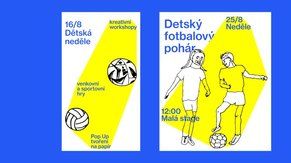 V našem návrhu sezónního vizuálu pro Plzeňské náplavky jsme chtěly vystihnout jedinečnou živou atmosféru léta společně stráveného u plzeňských řek, a zároveň se vyhnout vizuálnímu klišé symbolu vody, vlnění a podobně. Stěžejním prvkem našeho návrhu je barevný dynamicky se měnící tvar, který pro nás představuje jakousi vizuální platformu – někdy může připomínat sluneční svit, jindy záři reflektoru či dráhu míče. Napříč celou identitou tak velmi snadno propojuje jednotlivé body programu a umožňuje práci s fotografií i odlehčenou neformální ilustrací. Identita je flexibilní, živá a podporuje pohyb a interakci, čímž, jak doufáme, skvěle rezonuje s letním programem plným koncertů, workshopů a dalších kreativních zážitků.